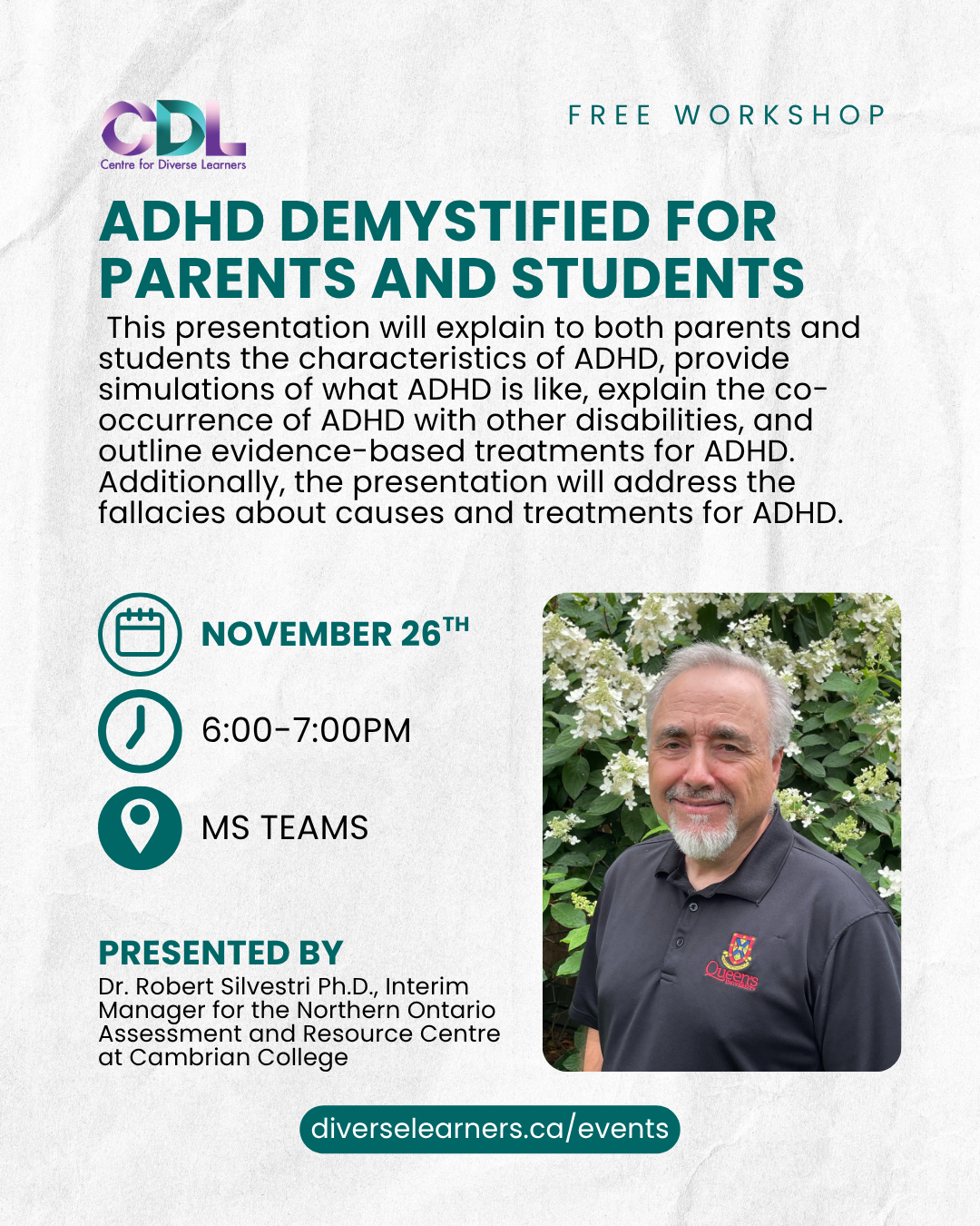 We are hosting a free workshop designed to support both parents and students in gaining a clearer understanding of ADHD.